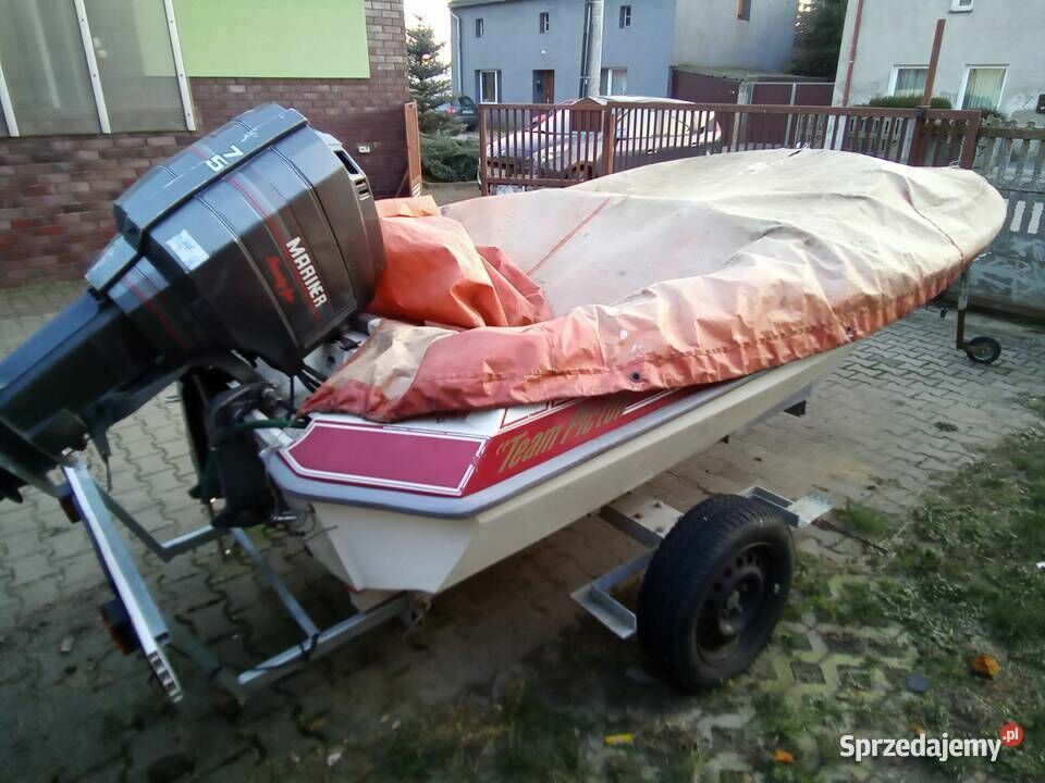 Motorówka Team Picton 150 GTS z silnikiem zaburtowym MARINER 75KM dwusuwowy odpalany z rozrusznika. Motorówka posiada dokument rejestracyjny jednostki pływającej. Do tego przyczepka podlodziowa niezarejestrowana.maciej